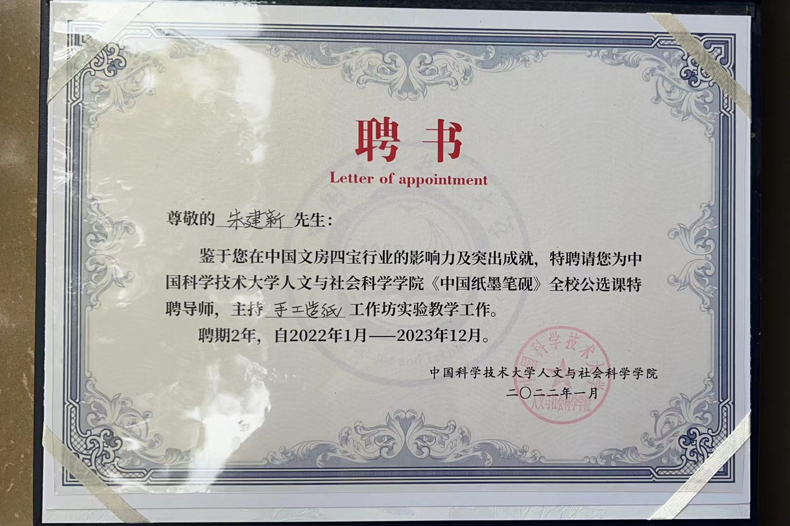 2020年公司實(shí)現(xiàn)了文化類規(guī)上企業(yè),迄今已申請(qǐng)了15項(xiàng)發(fā)明專利,19項(xiàng)實(shí)用新型專利,其中已授權(quán)發(fā)明專利3項(xiàng),實(shí)用新型專利11項(xiàng);2022年,公司為北京第24屆冬季奧運(yùn)會(huì)提供楮皮紙和紀(jì)念品,非遺傳承人朱建新被授予北京2022年冬季奧會(huì)參與證書,以感謝第24屆冬奧會(huì)取得圓滿成功做出的貢獻(xiàn)。2022年-2024年,朱建新被中國科技大學(xué)聘為《中國筆墨紙硯》全校公選課特聘導(dǎo)師;2023年,朱建新獲省級(jí)非遺傳承人稱號(hào)、“黃山工匠”稱號(hào)。